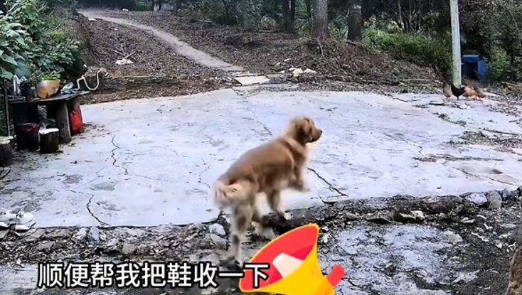 随后,主人又告诉冬瓜把鞋子收一下,冬瓜乖乖的把鞋子拿回屋里去。