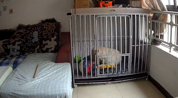一时间狗笼被各种杂物堆满,狗子却在里面一动不动,主人以为它没了。