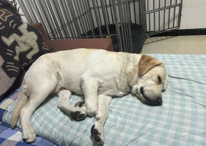 自从笼子塌了之后,狗子直接睡到沙发上去了,这就让我有点怀疑,到底笼子是咋塌的了?