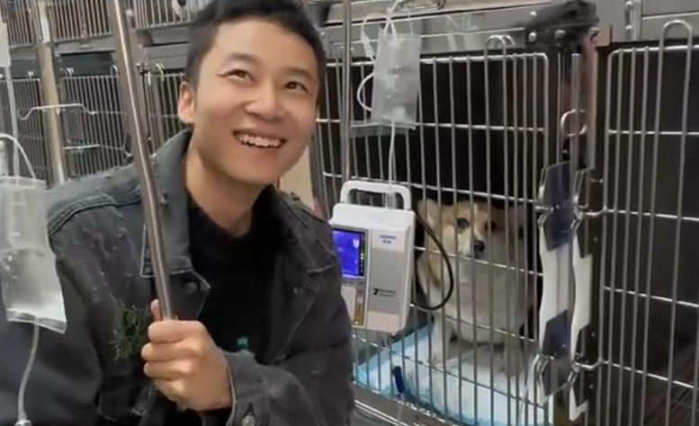 主人说,狗笼子会塌,是前一天,狗子女朋友来了,两只狗子在笼子里玩,让笼子有些松散,所以……