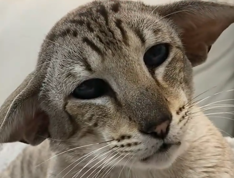 被狗子吵醒的猫,一脸严肃的盯着狗子,猫猫拳已经准备好了。