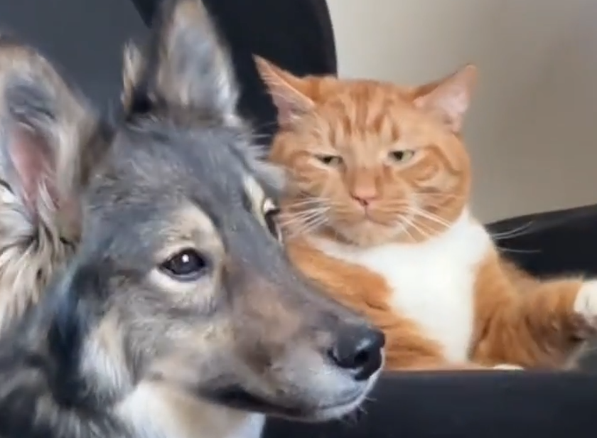 有位网友家养了两只狗一只橘猫,这只橘猫在家的地位极高。