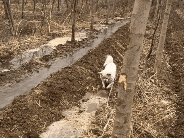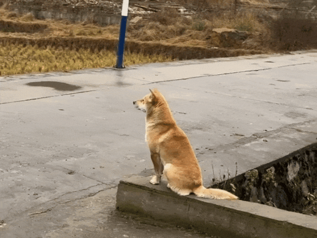 村里刚铺的水泥路,大黄看到上面前面有人在施工,它会懂事的从旁边绕路,不会在未干的水泥上行走。
