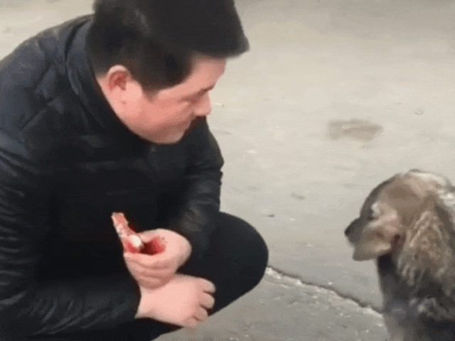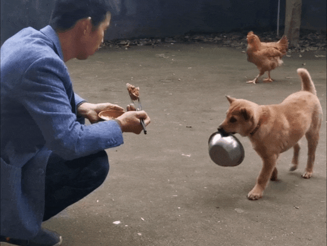 因为大黄从不吃人手里的食物,当你把火腿肠放在地上,它会抬爪和你握手表示感谢。