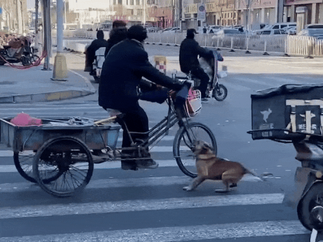 大黄很懂事,每次和爷爷出门时,它总会帮爷爷向前用力拉车,小小的身躯,却总能爆发出惊人的力量,这些年帮爷爷省下不少力气。
