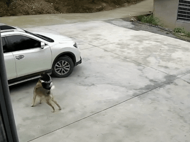 大黄看家护院从来不在话下,别看它白天有时候趴在那里眯着眼,好像已经睡着了。