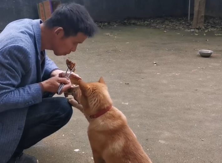 有时候,家里来亲戚,给大黄带点火腿肠,用手喂它吃,它也不吃。