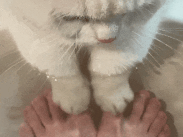 家里的小猫咪刚开始只是试探性去水里面玩两下,后来它居然慢慢的发现了泡脚的快乐。