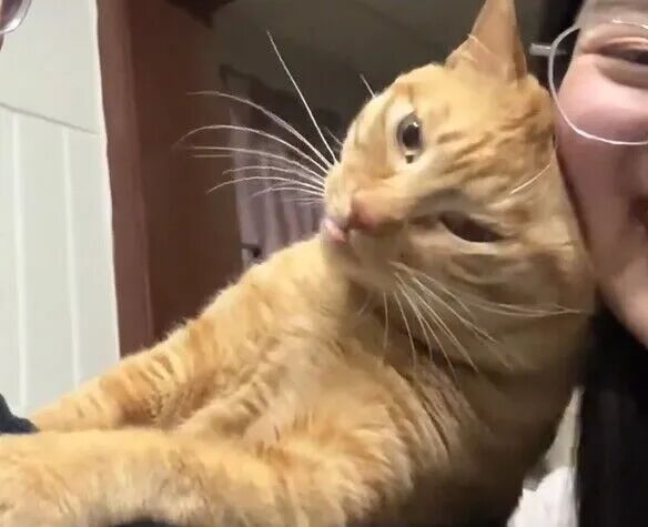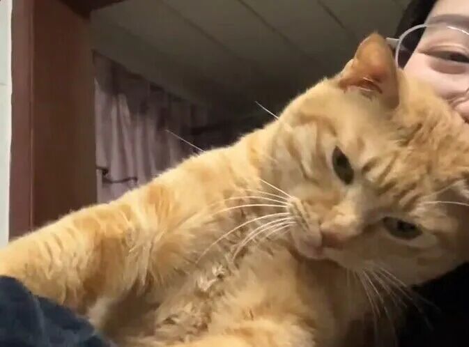 爸爸妈妈从老家半夜赶到成都,抱起橘猫,它就开始在妈妈脸上蹭蹭亲亲,然后伸长脖子,又去爸爸脸上贴贴,就这样反复的在两个人身上贴贴,一家人在一起其乐融融。