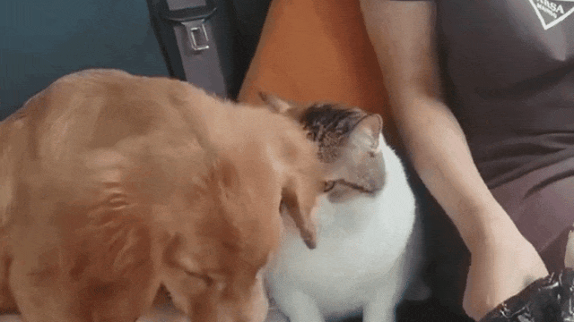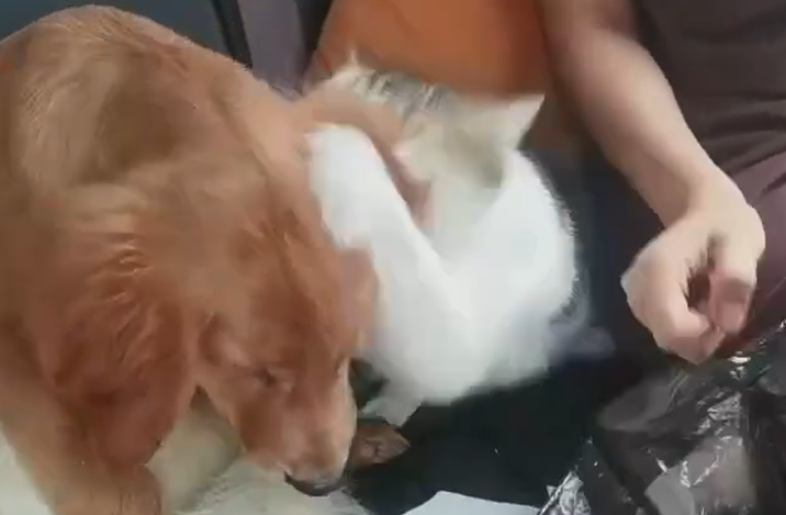 晕车还被猫打的金毛