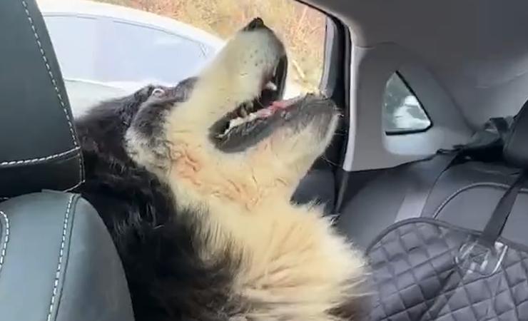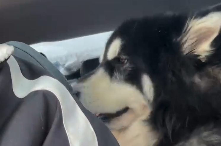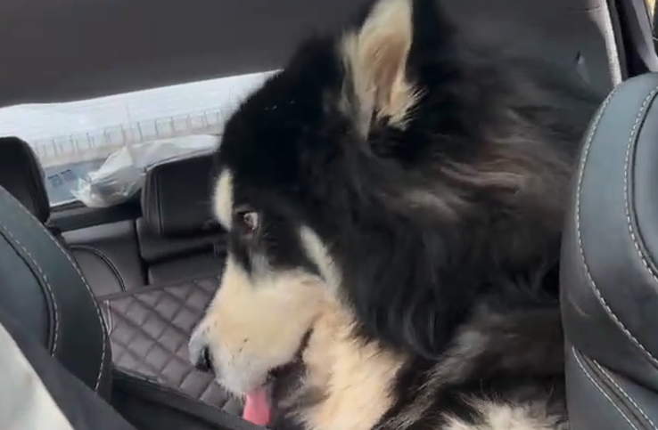 这只叫帅帅的阿拉斯加,狗如其名,确实长得挺帅,过年时家人开着带着它已经回老家,本来在在老家的日子挺开心的,没想到返程时,高速一直堵车,把狗子整崩溃了。