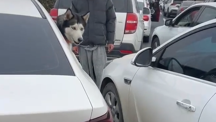 随后,金毛在主人的带领下,下车去找哈士奇理论,只见金毛站在哈士奇的车子外大叫,此时的哈士奇一声不吭,一脸不敢相信的看着金毛:我说着玩的,你下来干啥呀,怪吓狗的。