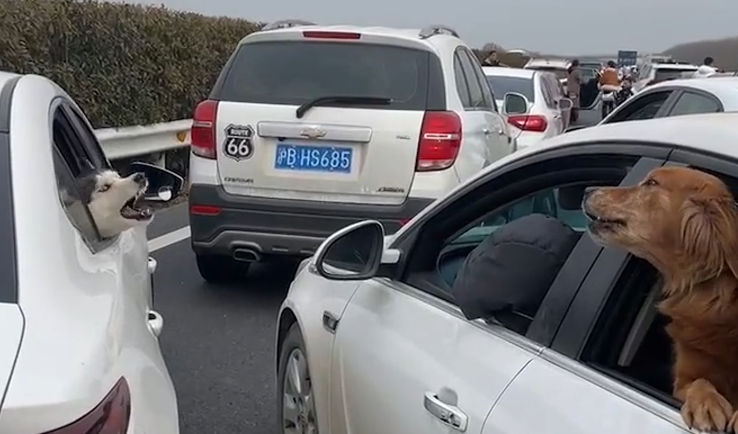 不怕高速堵车,就怕堵车时车上有狗,不怕堵车时车上有狗,就怕遇到另外一个车上也有狗。