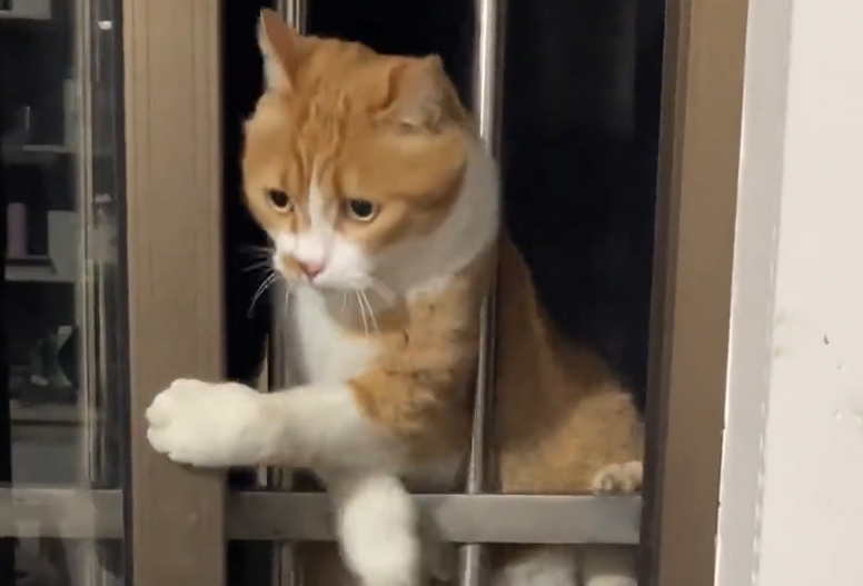 这只大橘喜欢出去玩,而且经常趁着家人不注意就跑出去玩,然后自己从窗户的护栏缝隙里再钻回来,这种方法让大橘来去自由。