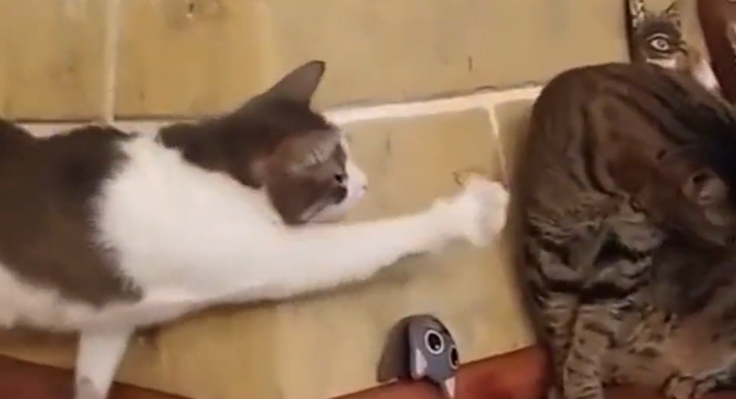 有的小猫咪,想趁另一个小猫咪不注意,偷偷对人家干坏事,哪成想被发现了,这种尴尬如果不去化解,就很容易挨揍。
