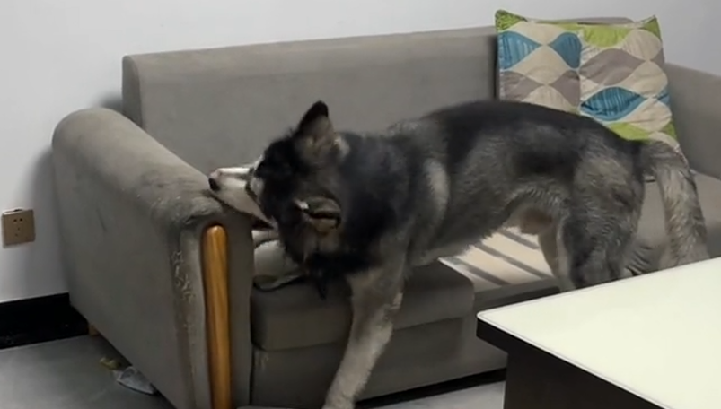 这只阿拉斯加叫米修,家里还有一只金毛,它不和别的狗子玩,反而当着主人的面拆家。