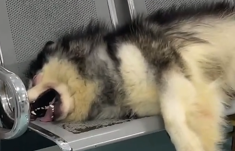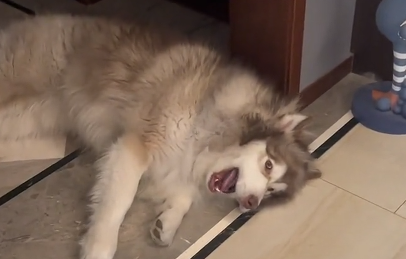 还有一只叫底料阿拉斯加,在家睡觉时,突然惨叫,一边叫一边在地上打滚。