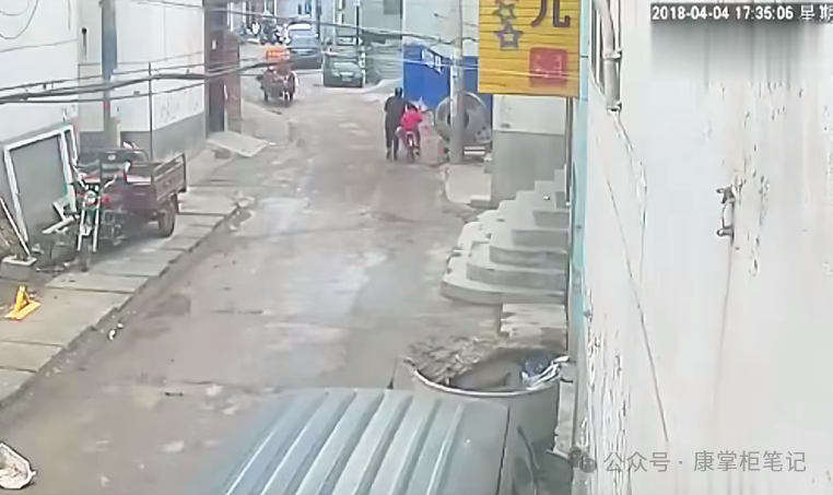 监控显示史某跟女儿下午五点半在学校方向中走出,身边跟着一男子,两人似乎在聊着什么,边聊边朝案发现场方向走去。