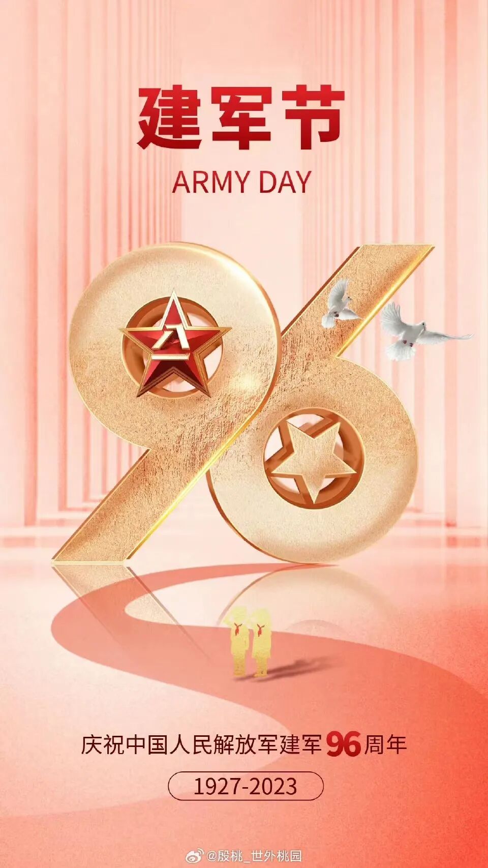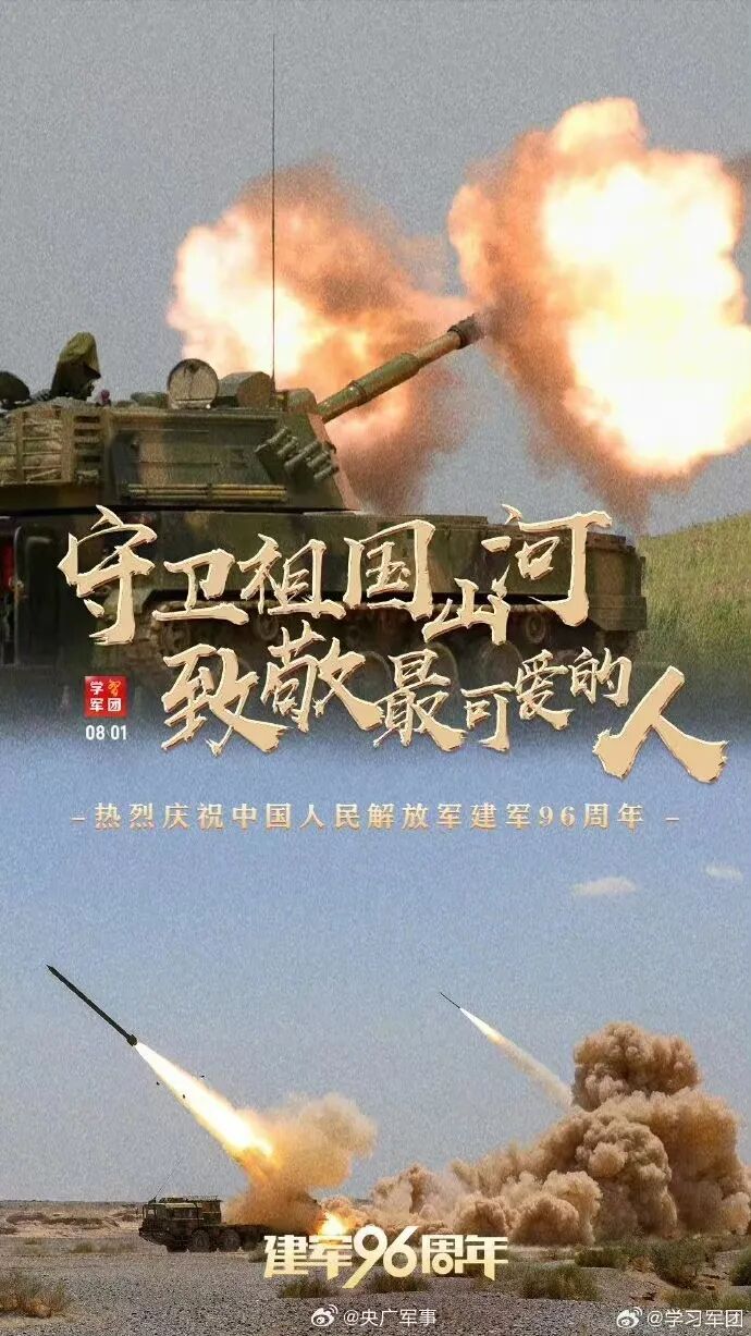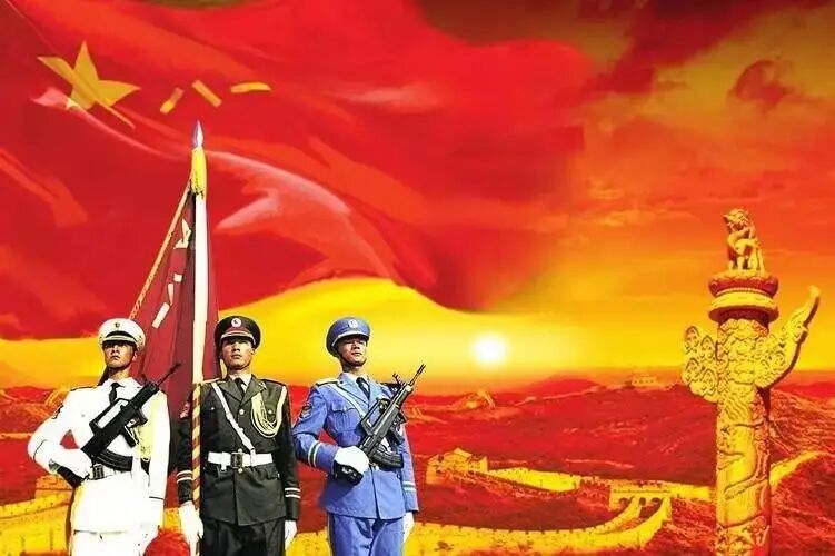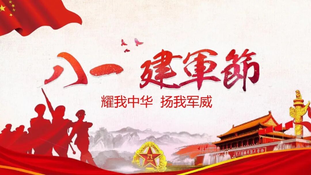 金黄八一军民唤,赤锦戎旗卒帅扬。