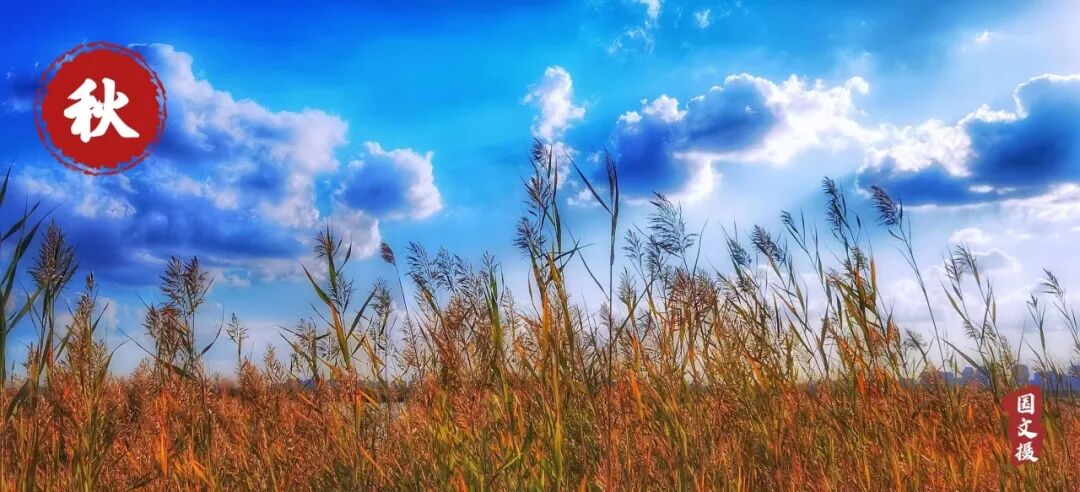 白苇沙沙吟水碧,丹霞灿灿耀枫红。