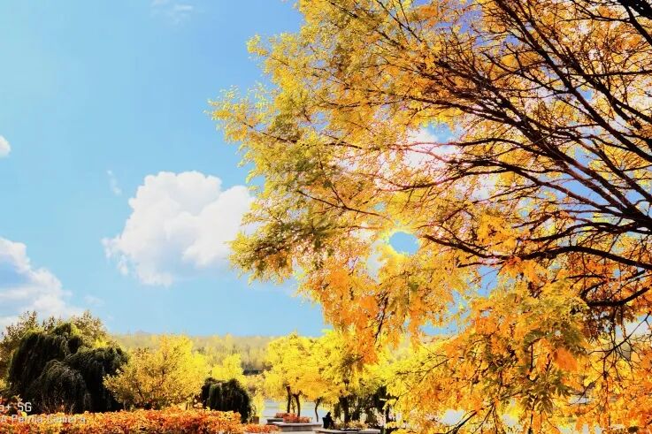 风凋碧树新黄灿,目送归鸿旧梦浮。