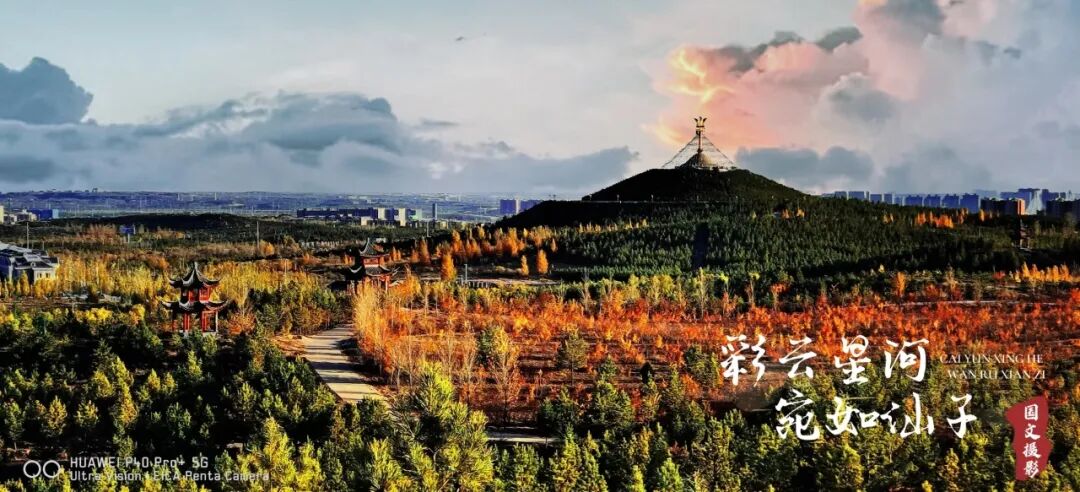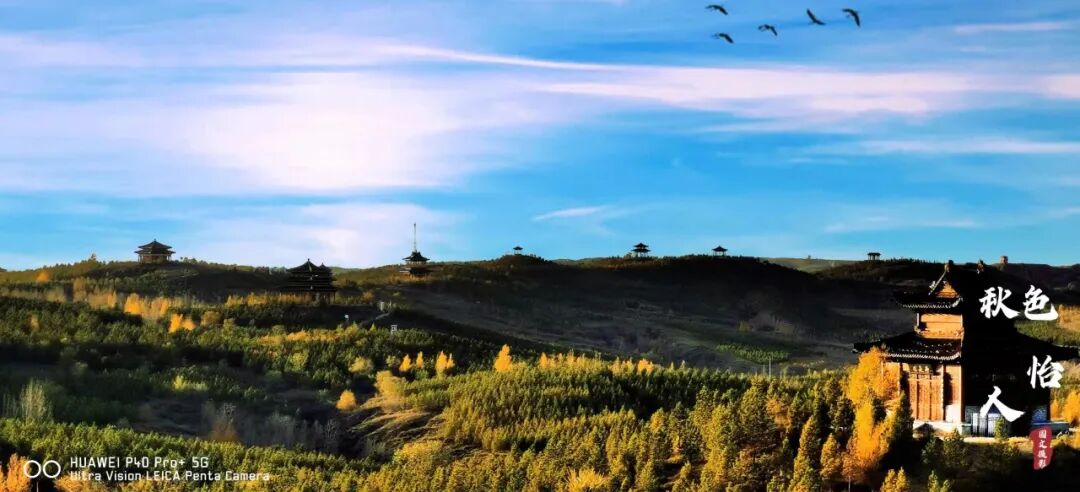 塞北秋深如画卷,笑携峰岭卧云烟。