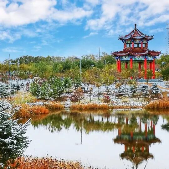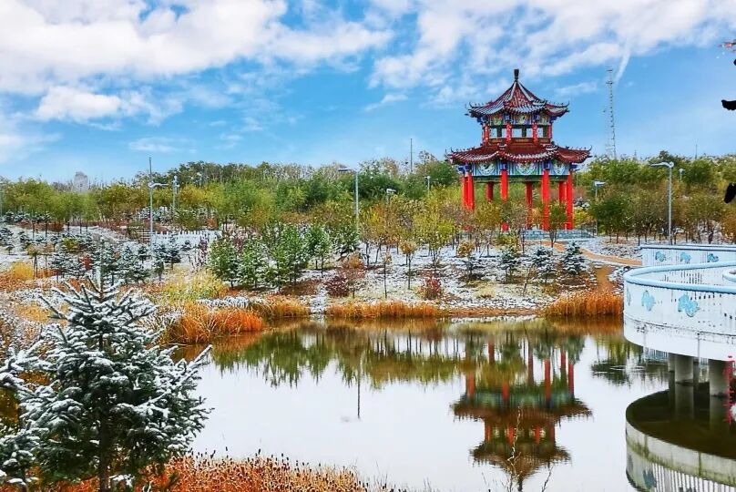 梅开二度初冬示,密布彤云落雪时。琼花漫舞下莲池。垂柳枝,窗外景如诗。