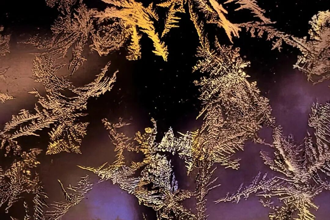 冷汽凝霜雕画景,冰窗谁在绣花针。