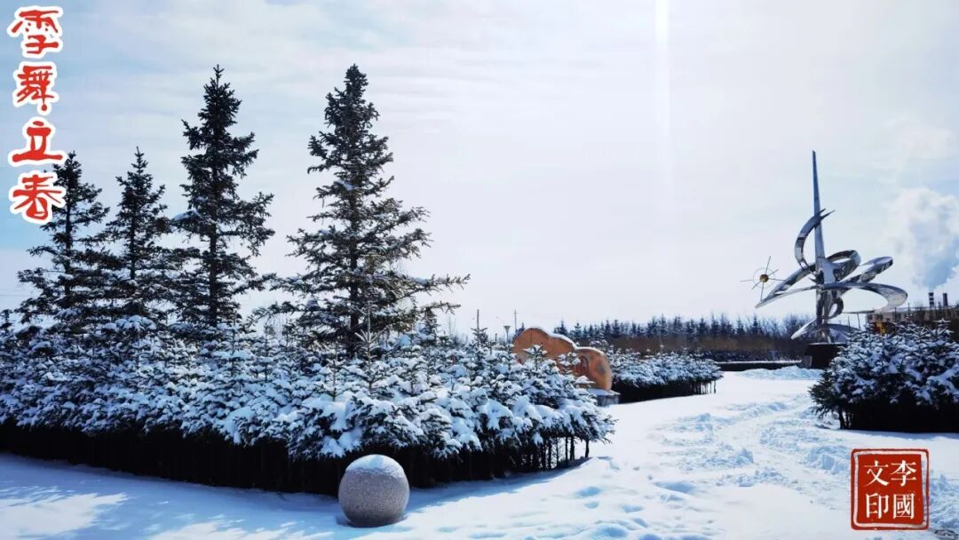 寒冬玉宇飞花到,老翁故事哄孙笑。闹红火队街头跳,摆摊位者村中叫。热闹(也么哥),热闹(也么哥)城乡一片欢声罩。