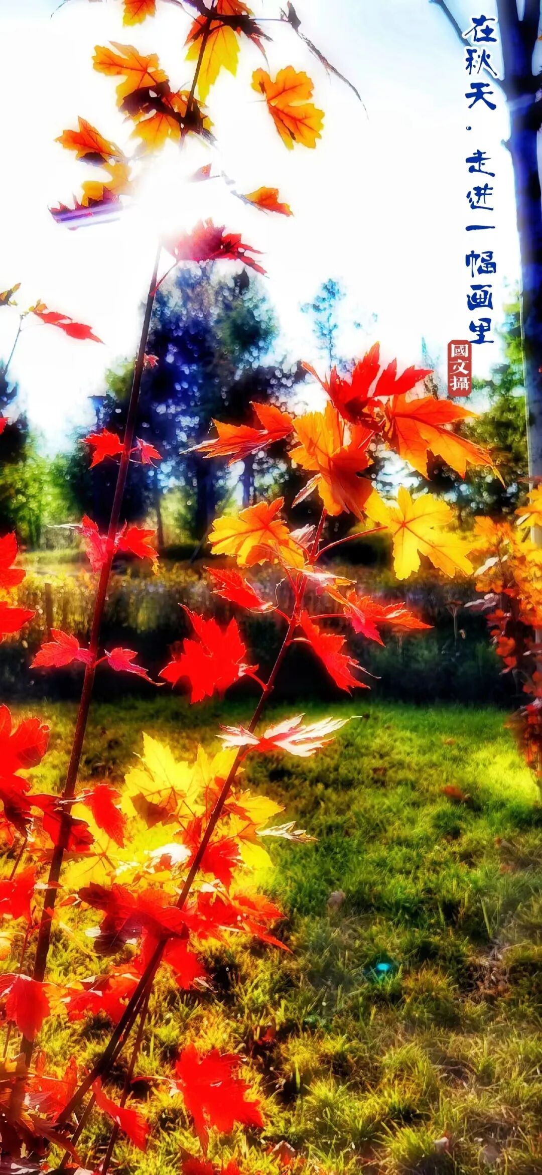 雨霁风和,云天霞染,雀欢新气秋浓。凭栏遥望,枫叶正飞红。菊桂争妍抖秀,九重日,亲友高登。共祈愿,健康安顺,最是步如松。