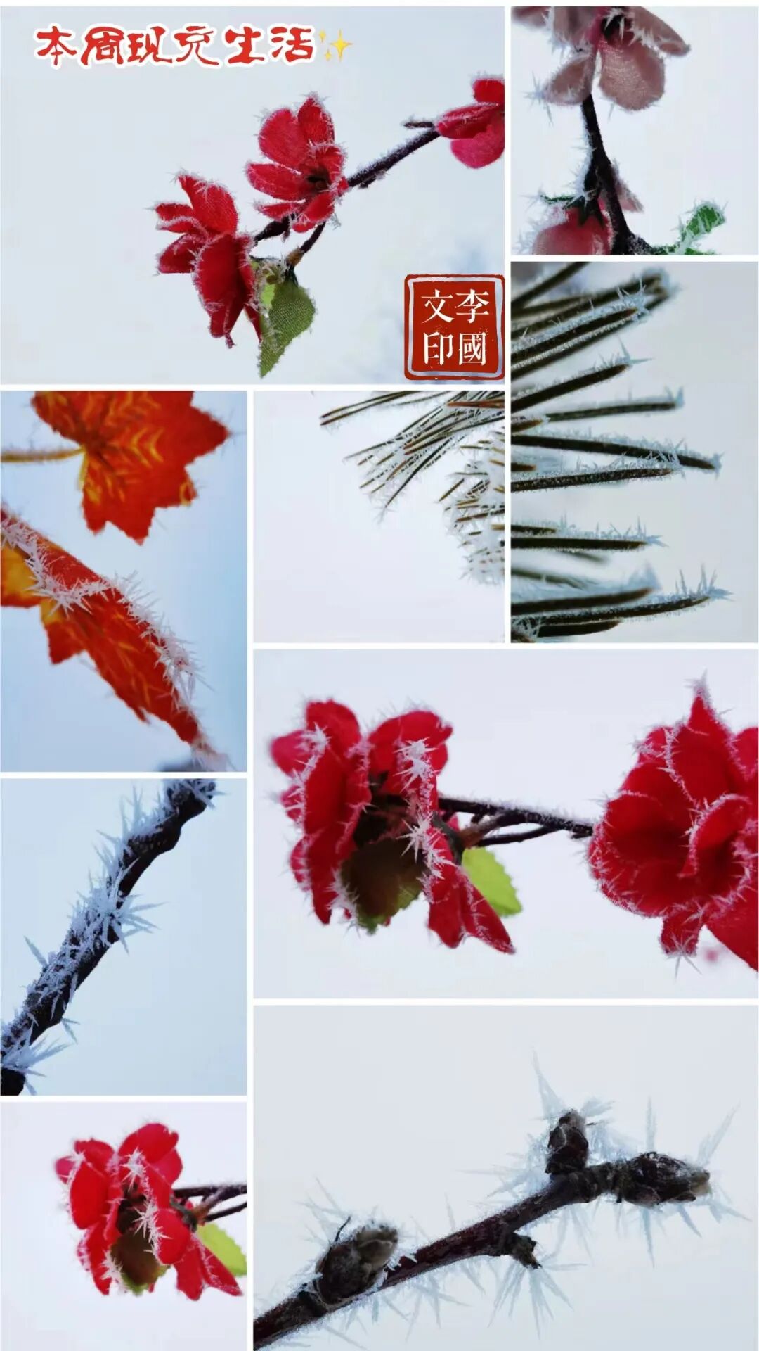 雾冷寒山松柏翠,冰雕素景腊梅鲜。