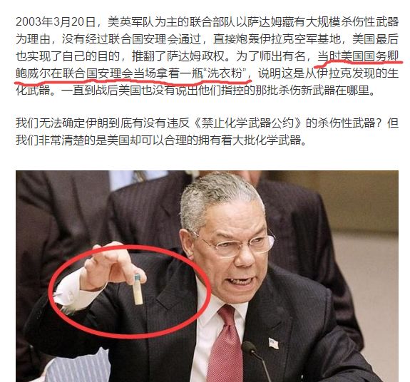打萨达姆不就是说为了解救伊拉克人民嘛,当时为了师出有名,还拿出一管洗衣粉。