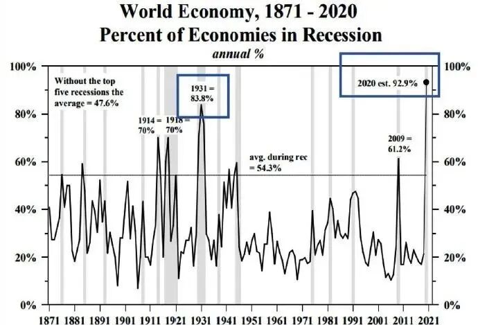 其实道理很简单,因为新冠疫情影响,全世界经济衰退同步性达到250年以来的最高水平。