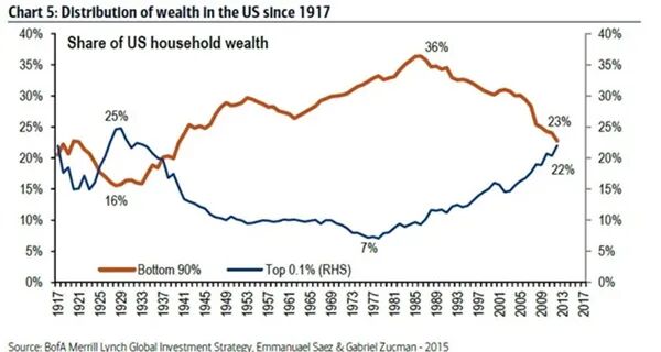 剥削导致的贫富分化达到极致导致了大家没钱买东西,生产相对过剩随之而来,引发了大萧条。