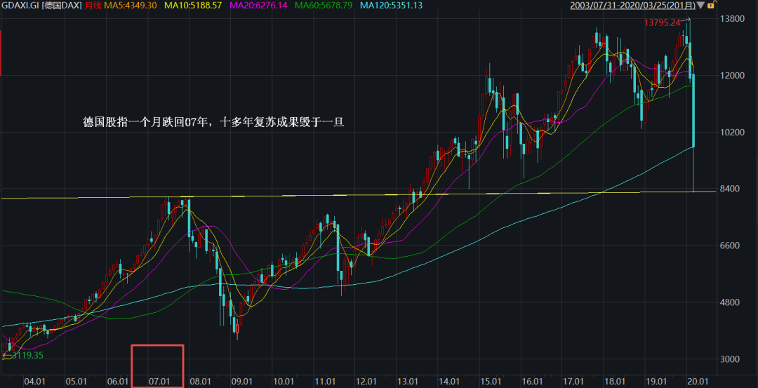 欧洲甚至跌的比美国还厉害,DAX指数甚至跌回了10年。