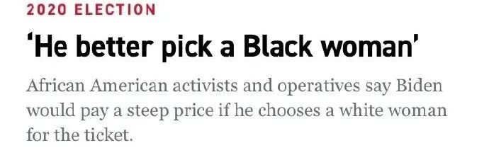 黑人精英对此心知肚明,甚至威胁拜登说:如果挑选一个白人做搭档的话,他将付出沉重的代价。
