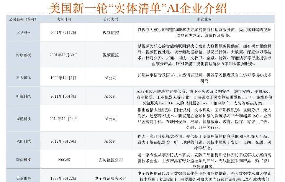 所以继华为之后,我们看到老美继续封杀了多家中国人工智能和安防技术最负盛名的公司和学校。