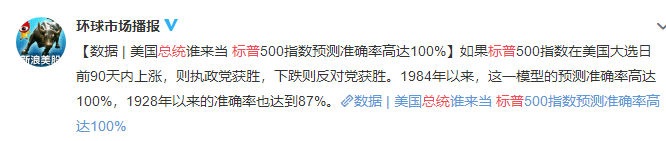 标普走势大选前上涨和总统连任相关度高达85%,本周也有媒体报道了这个规律。