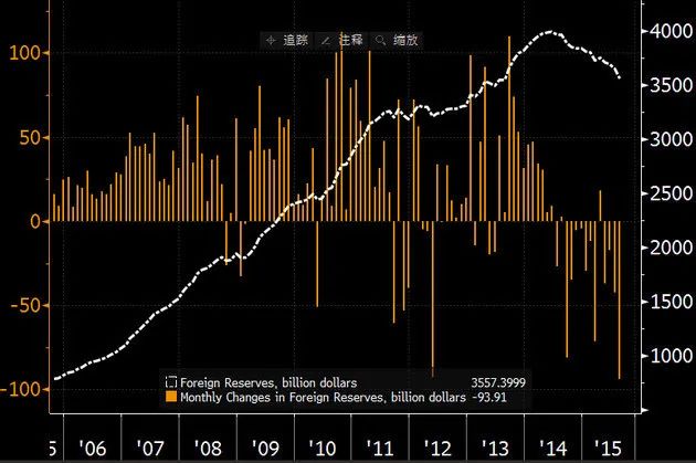 看看下图2015年最后几个月外汇流出的速度就知道,当时有多惊人。