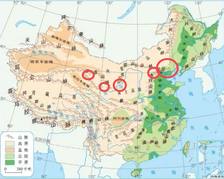 阴山处在下图标记那个位置,是北方草原游牧民族和中原之间的一条阻断山脉。