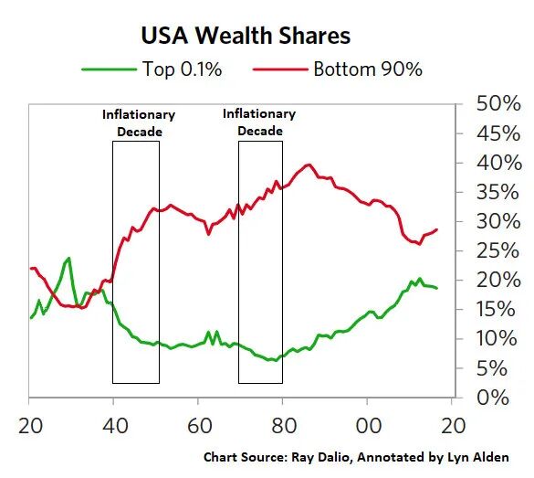 每次美国全社会贫富分化到45%以上这个位置,后面全世界总没啥好事。以前是萧条和战争,现在是金融危机。