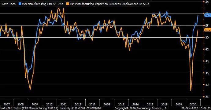 如果看美国的ISM制造业PMI,回升速度也是非常快的。