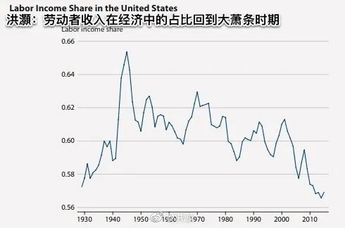 从图表上看非常明显,劳动者收入在经济中占比已经回到大萧条时期,这已经是六十年之前了。