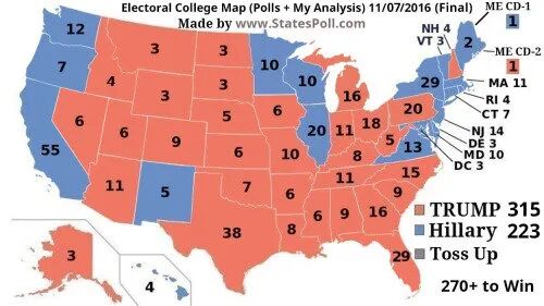 虽然民选票输给希拉里三百多万,但是因为成功的操作电邮门,逆转了几个摇摆州,最终取得了胜利。
