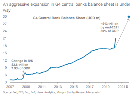 到目前为止,全球主要国家财政货币双刺激的规模,已经远超08年金融危机。