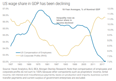 即使没有丢掉工作的劳动者,过去几十年在资本的主导下,实际收入也是在不断下降的。