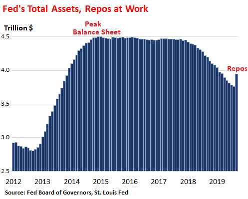 如果你看过最近美联储的资产负债表,会发现扩表已经开始了。当然了,有人会告诉你,资产增长主要来自纽约联储的回购。操作叫什么并不重要,重要的是宽松已经开始了。