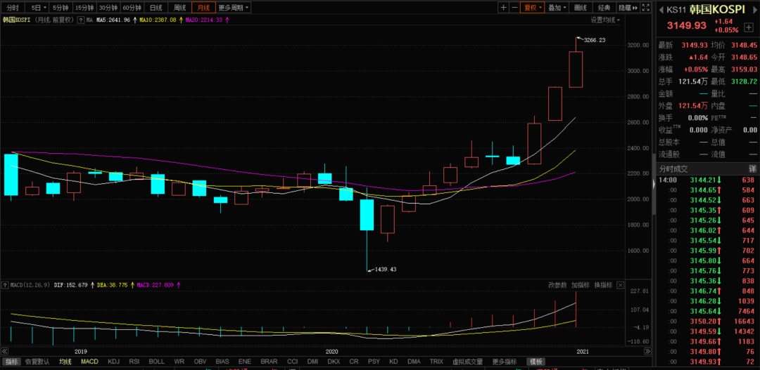 货币效应也体现在东亚股市上,虽然我们大A股也就刚刚突破,但是韩国KOSPI指数已经较3月翻番,创下历史新高。