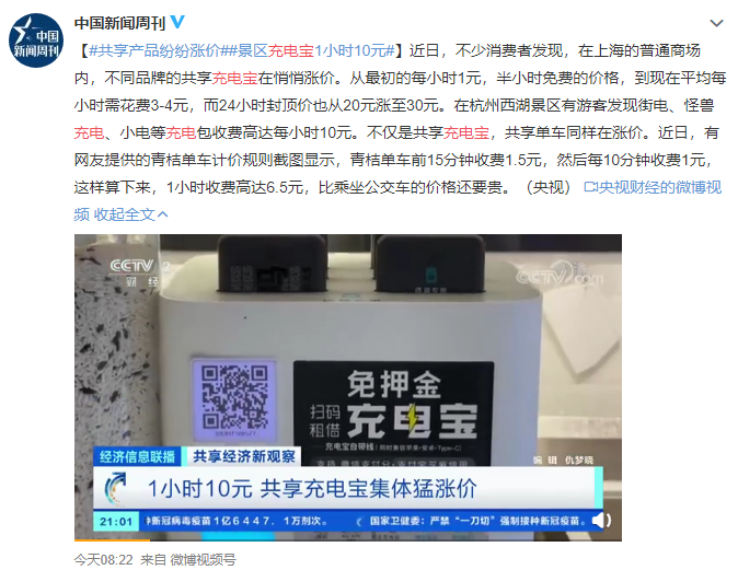 很典型的就是最近的共享产品,共享充电宝在不少热门商圈,已经从每小时1元悄悄涨到了10元。