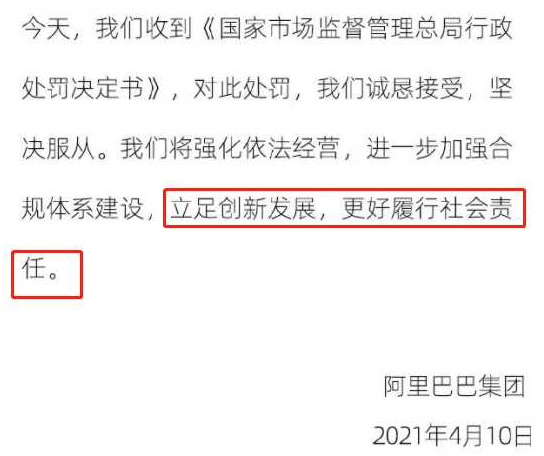 其实如果你看看阿里集团对市场监督总局处罚的回应,会发现它对自己有啥问题,可以说心知肚明。